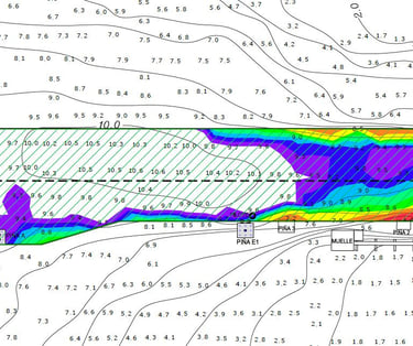 Ofrecemos un excelente servicio de batimetrías realizados con ecosonda multihaz REASON, sistema de posicionamiento diferencial con precisión centimétrica RTK con corrección de inercia 3D incorporada.